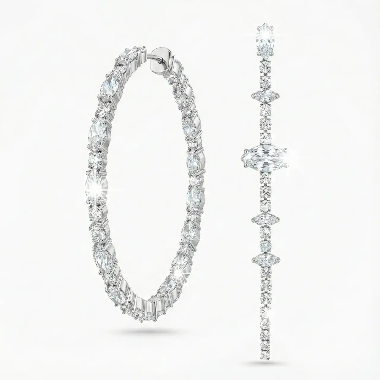 • Bir kulağınızda 5,4 cm çapında kristal taşlı halka yer alır.