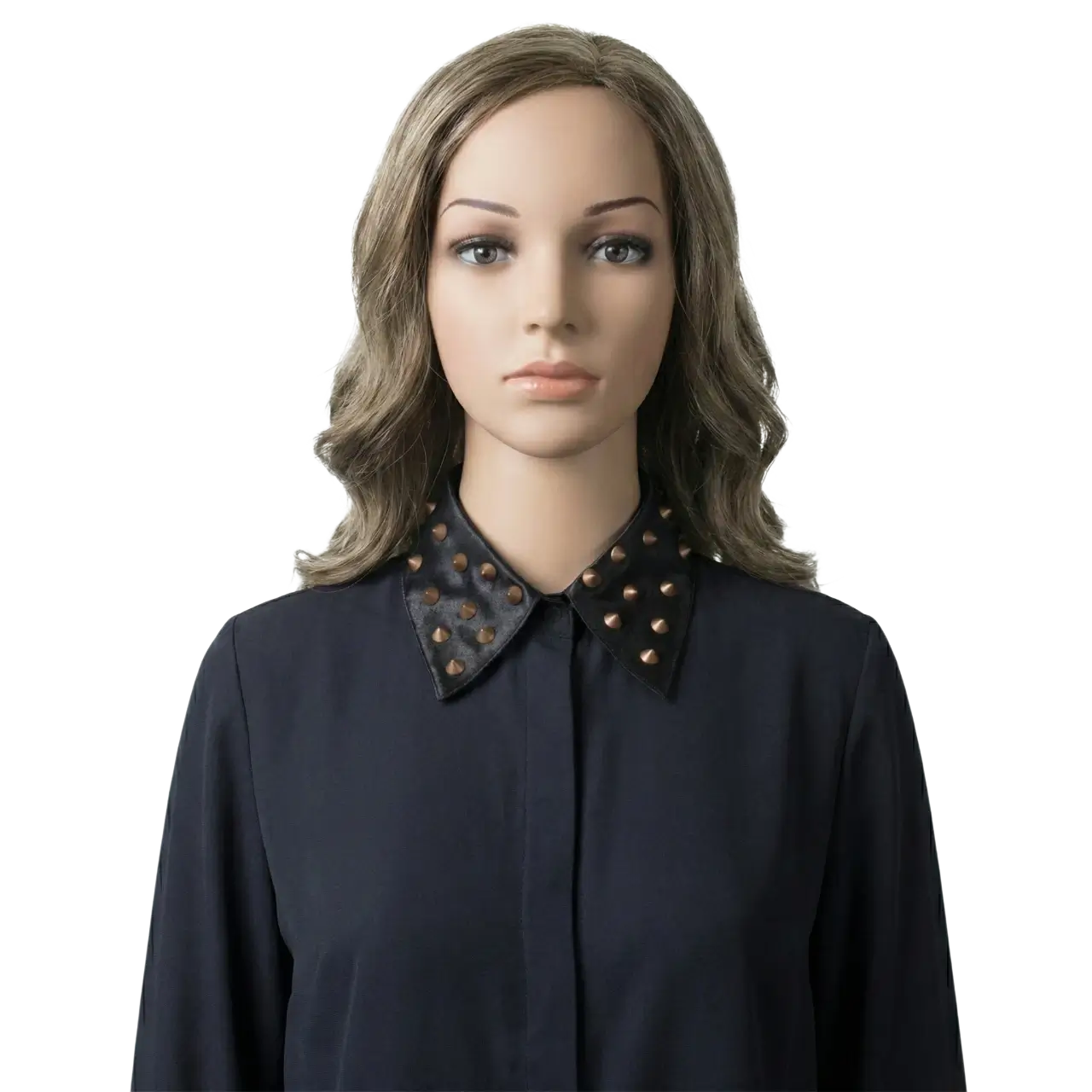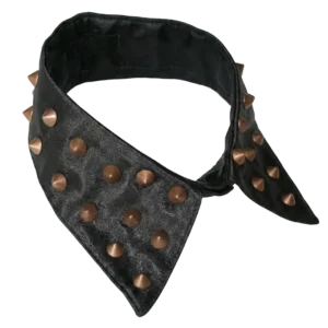 Bakır Troklu Siyah Saten Seyyar Yaka – Punk & Metalik Stil (40 cm)