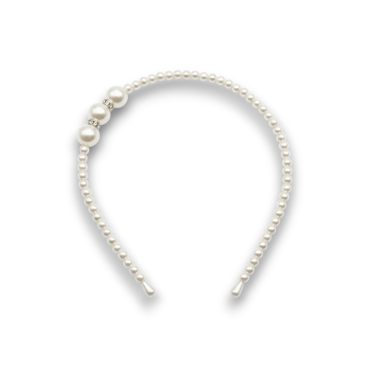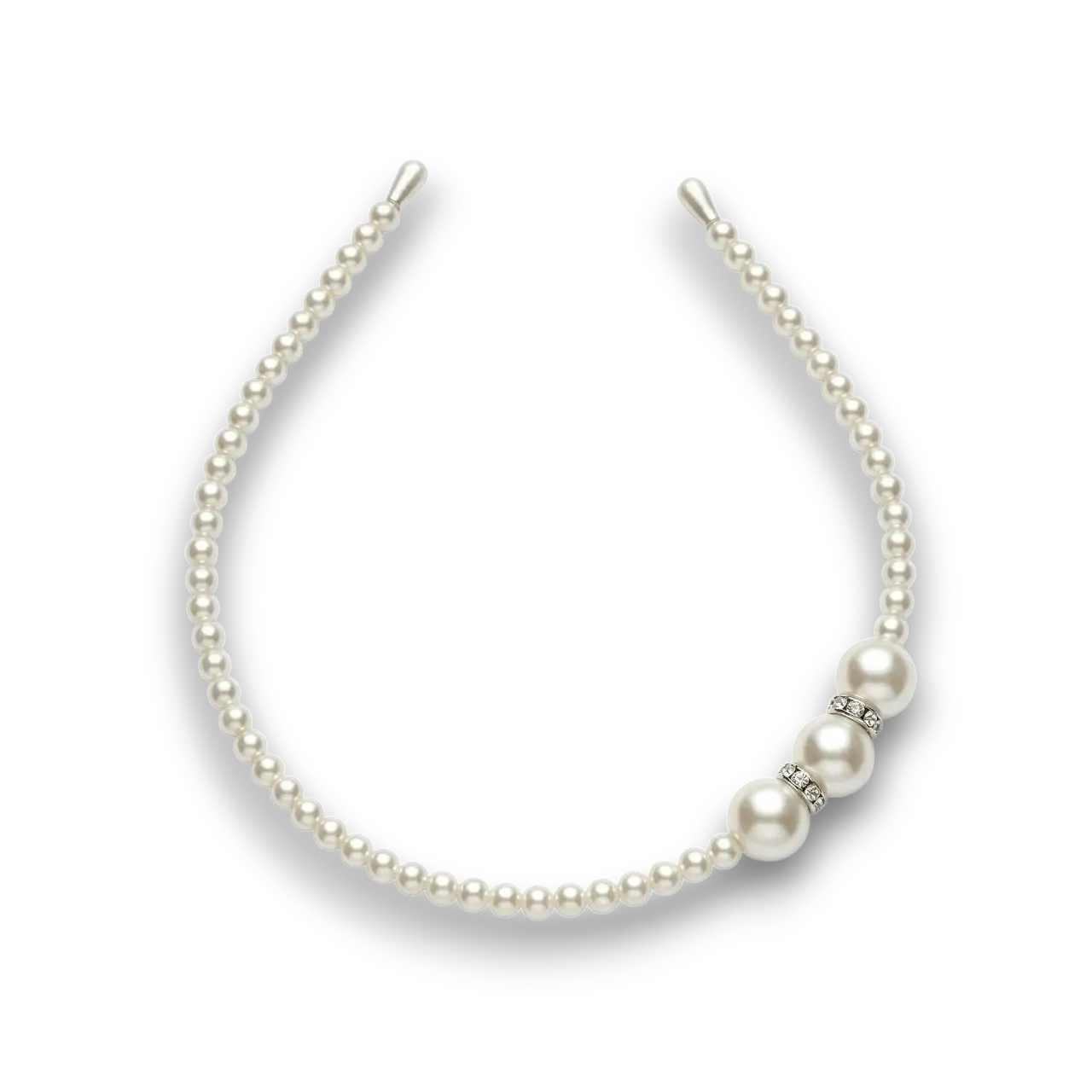 Beyaz İncili Parlak Taşlı Saç Tacı