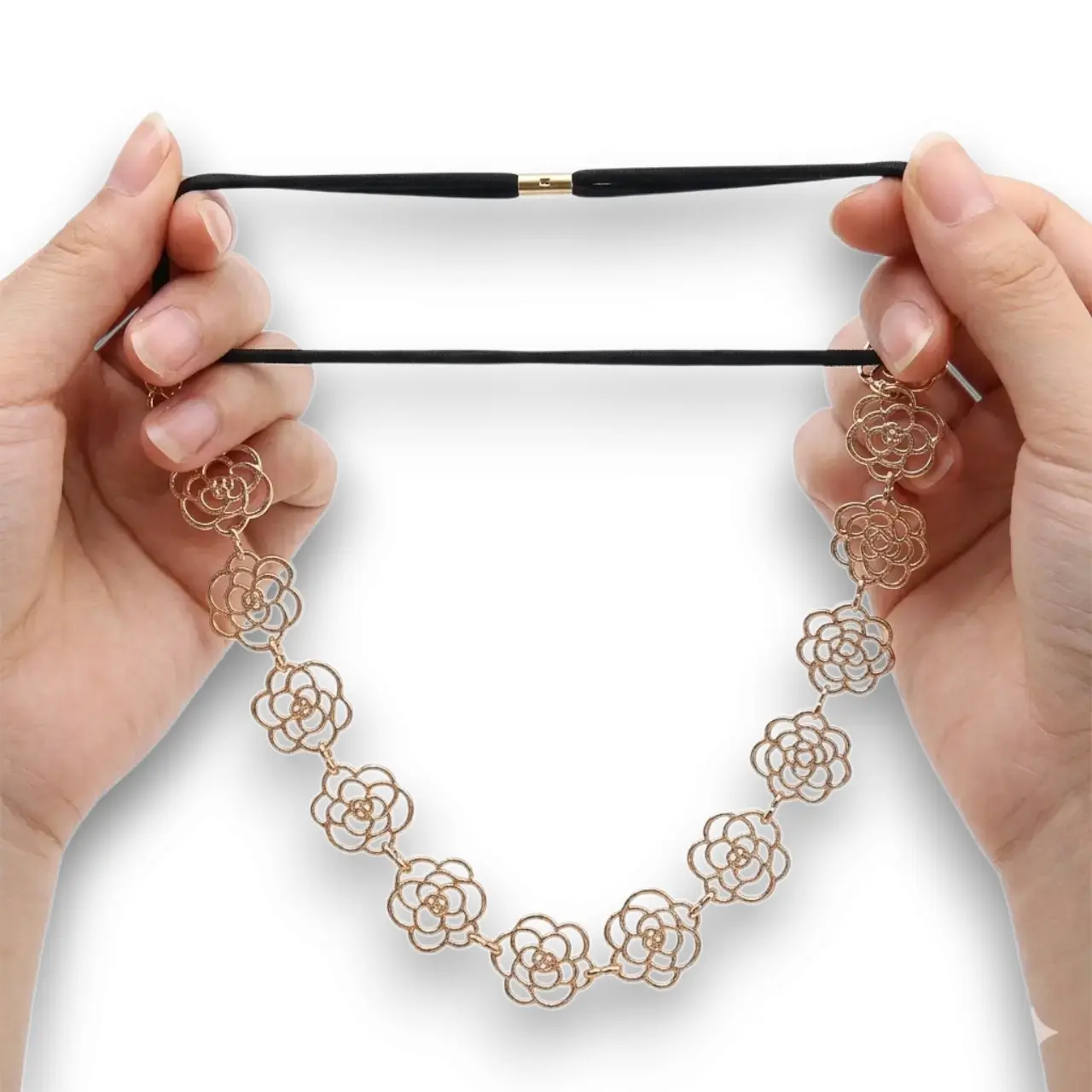 Gold rengi ve gül detayı çok şık duruyor. Lastikli yapısı sayesinde başı sıkmıyor, uzun süre rahatlıkla kullanabiliyorum. Çok beğendim!