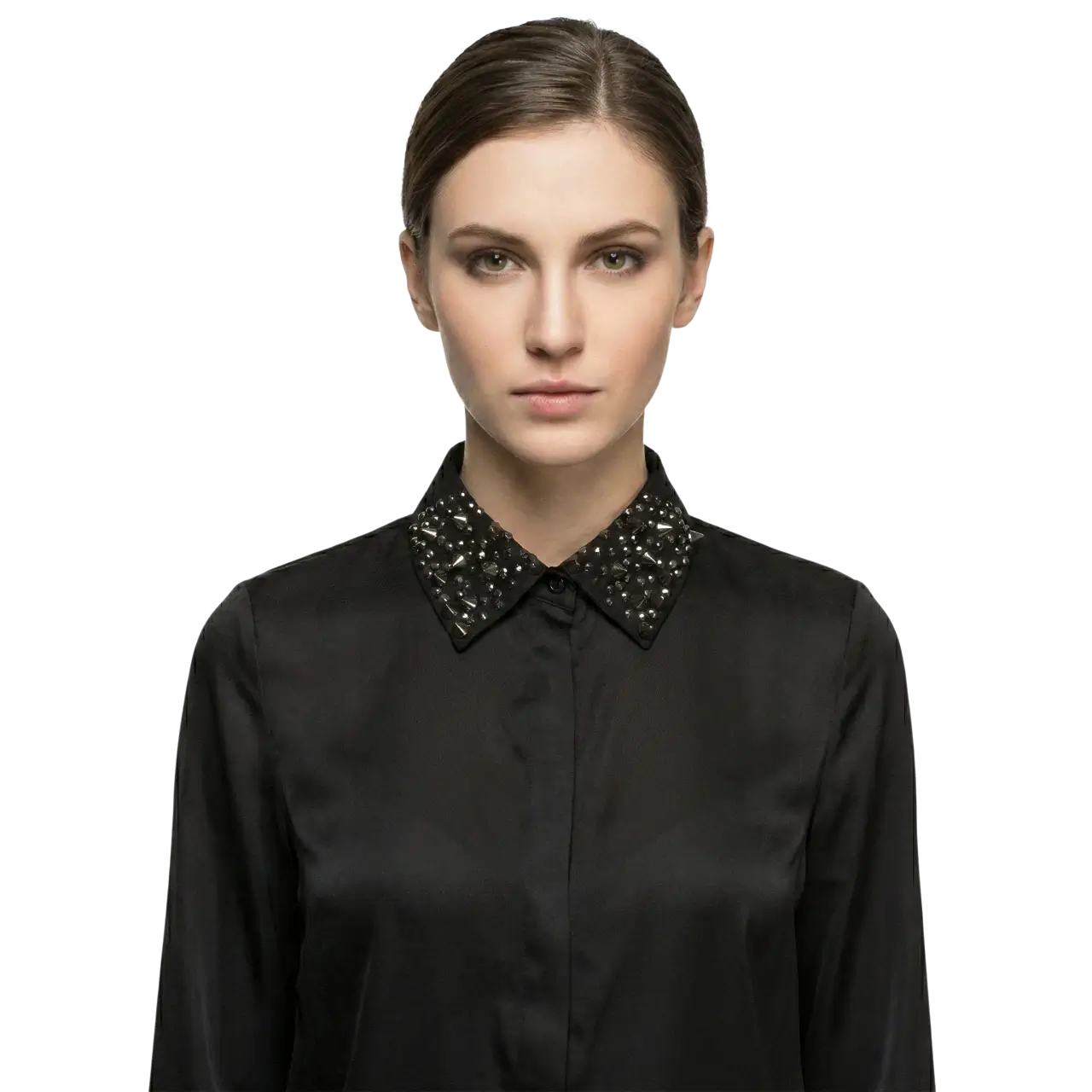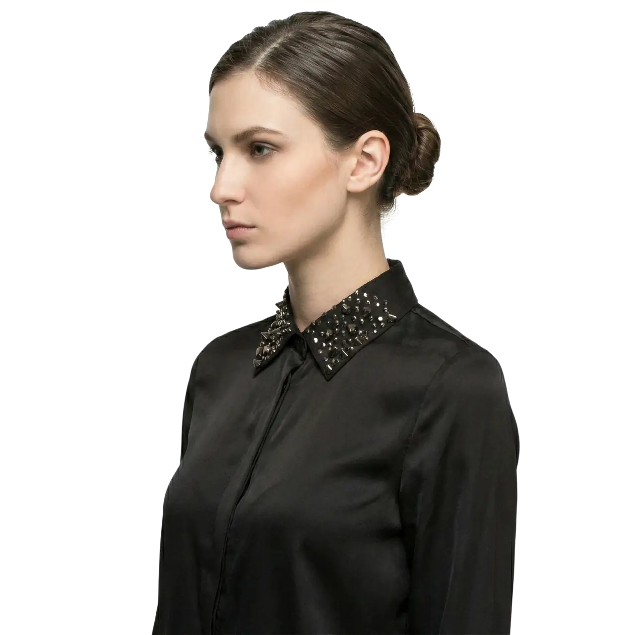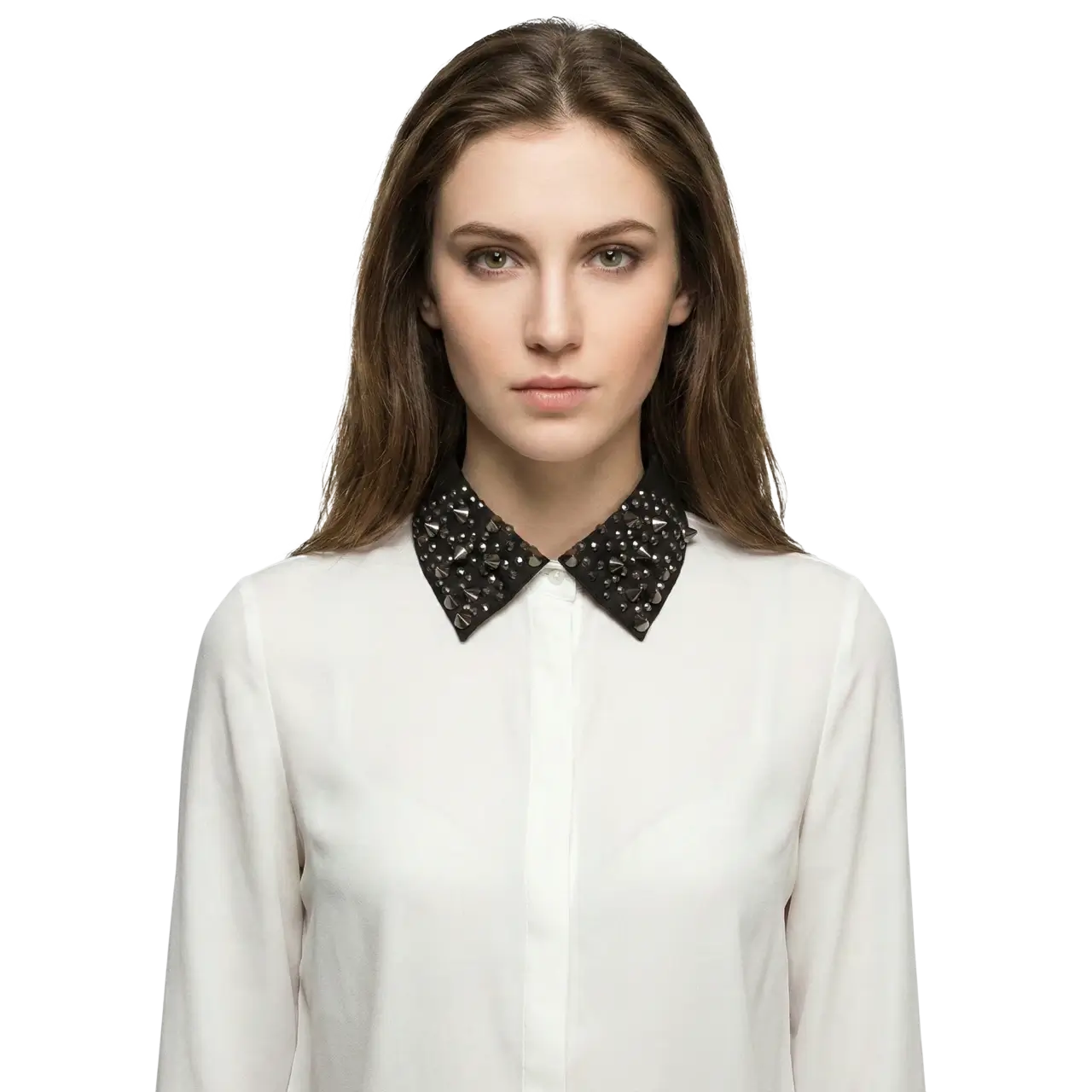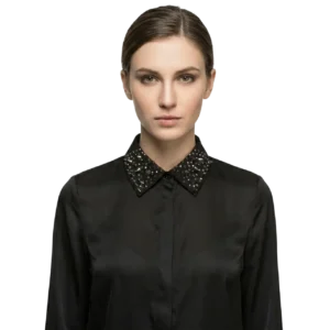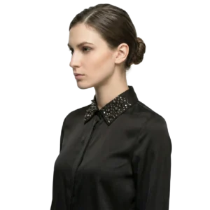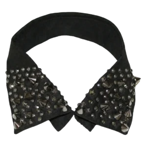 Çivi Troklu ve Pullu Gotik Seyyar Yaka – El Yapımı Tasarım (Siyah)