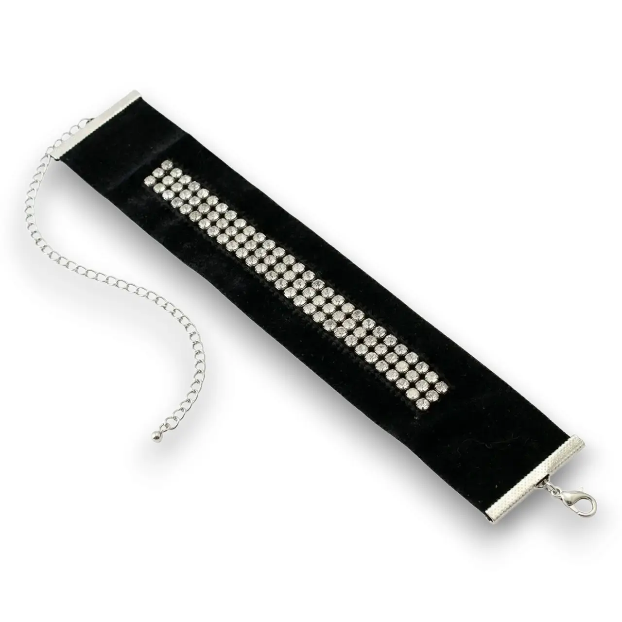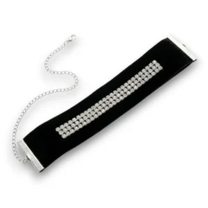 İnce Kadife Gümüş Taşlı Tasma Kolye