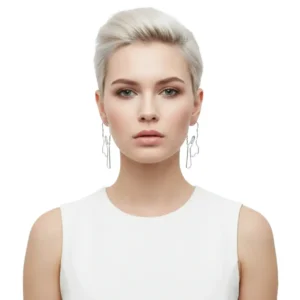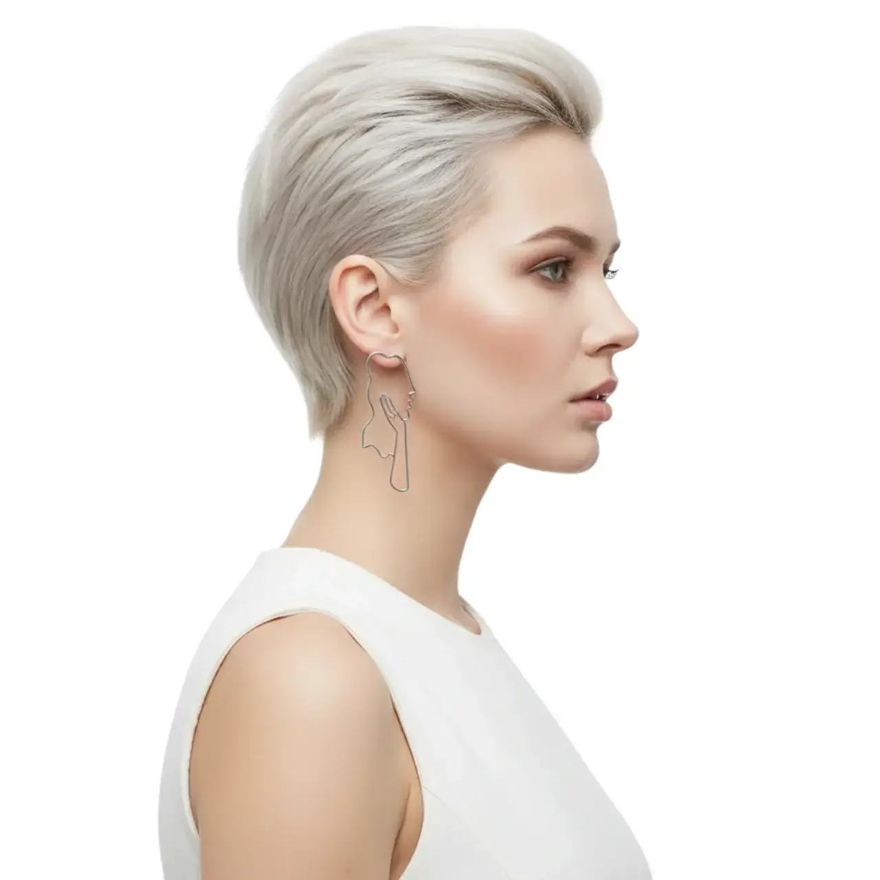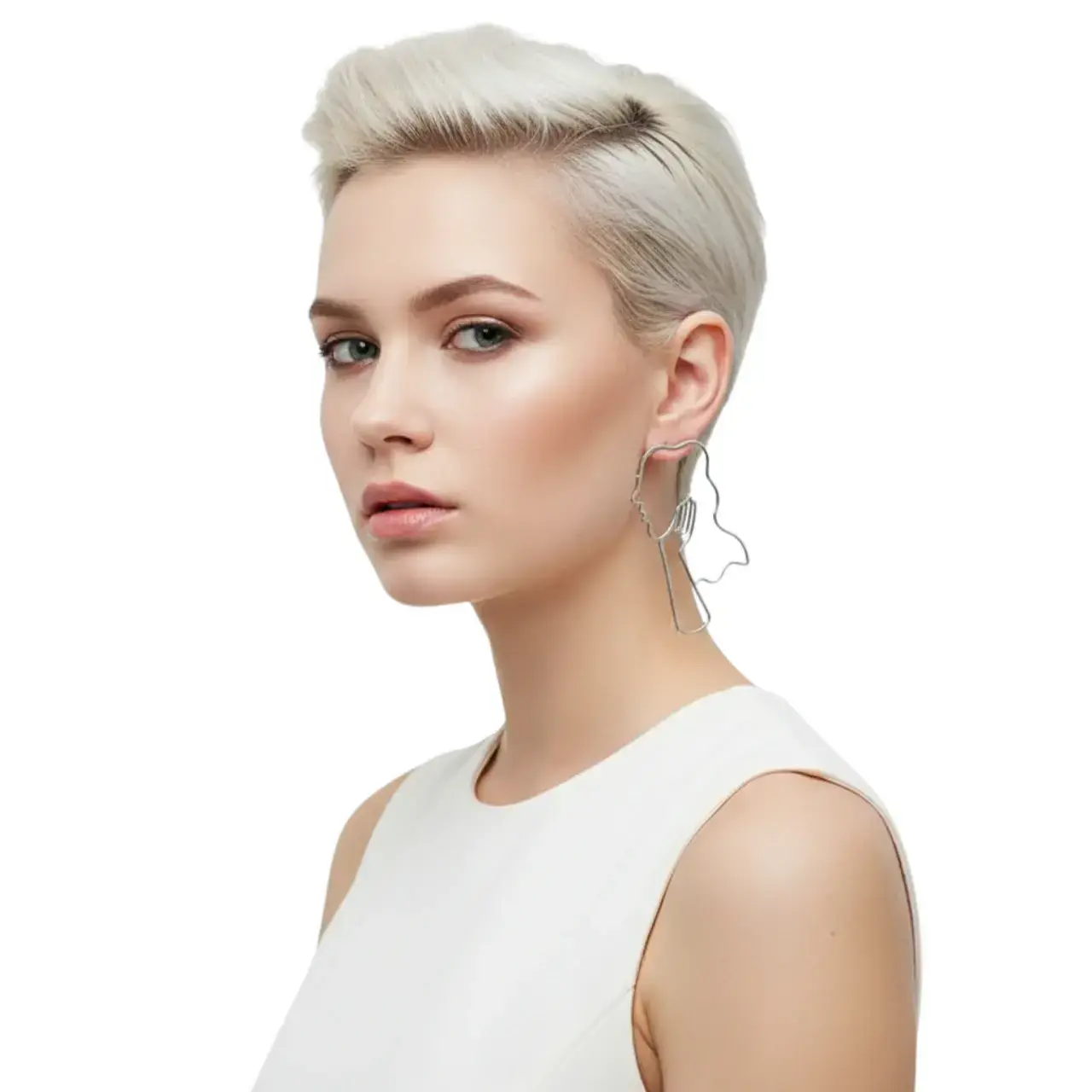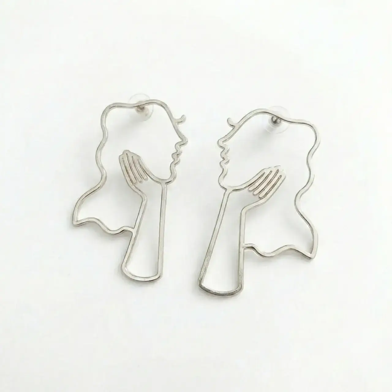 Kadın Figürlü Metal Küpe Gümüş Kaplama modernizmi şıklıkla buluşturur. TikiTonki takı dünyasının bu sanatsal parçasının özellikleri: