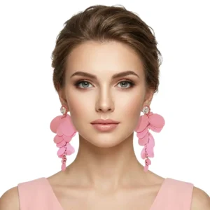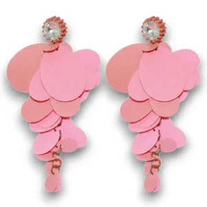 Kristal Küpe Yaprak Model Somon Tasarım