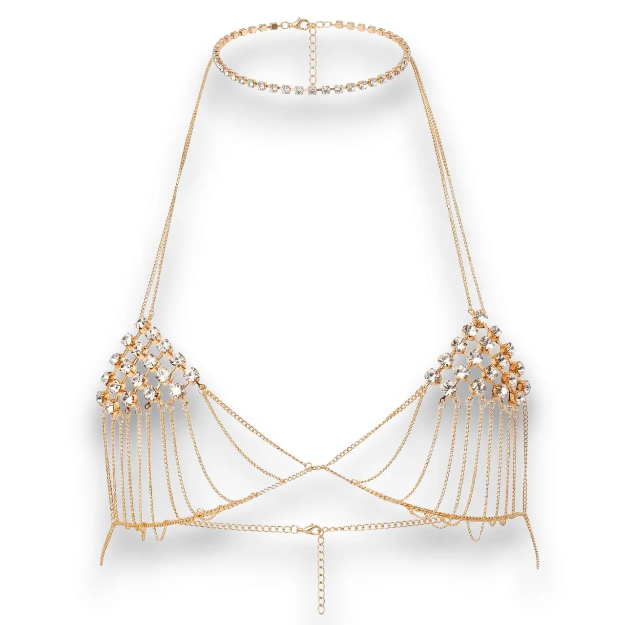 Kristal Taşlı Boyundan Bağlamalı Vücut Takısı