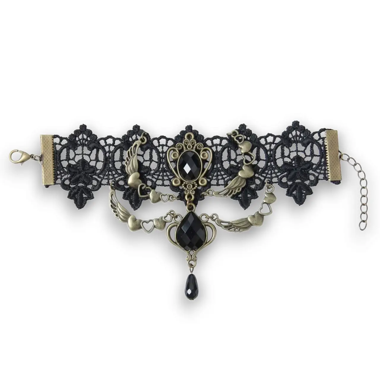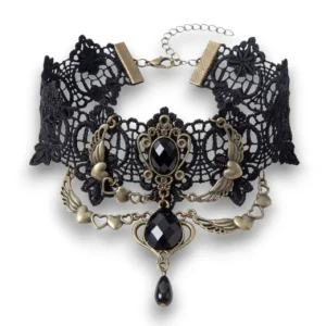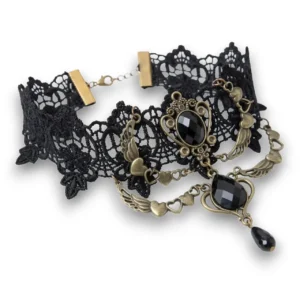 • Malzeme: Dantel, siyah kristal taş, metal alaşımlı kaplama