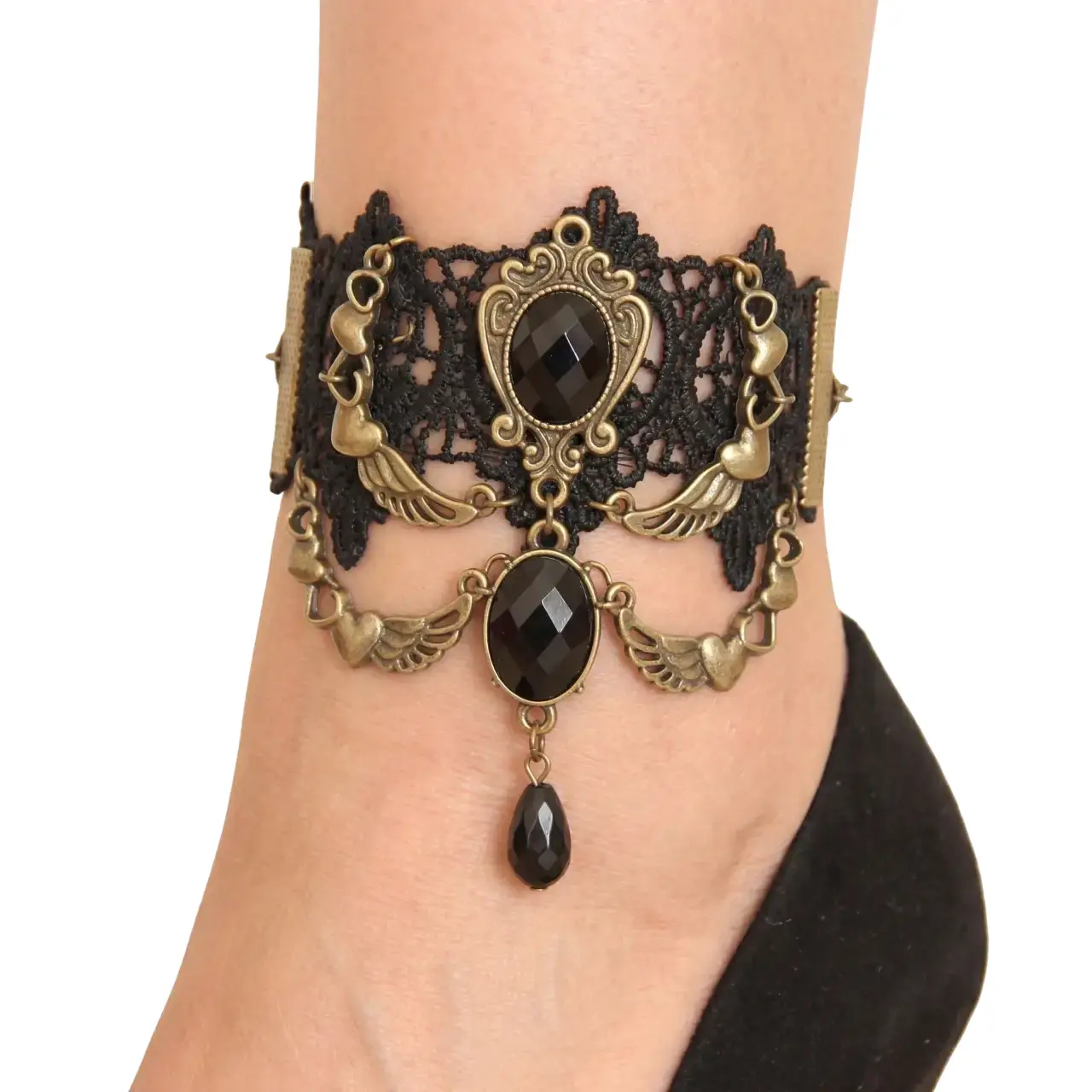 Kristal Taşlı Gotik Tarz Dantel Halhal