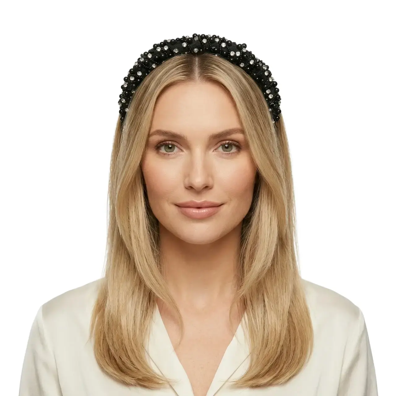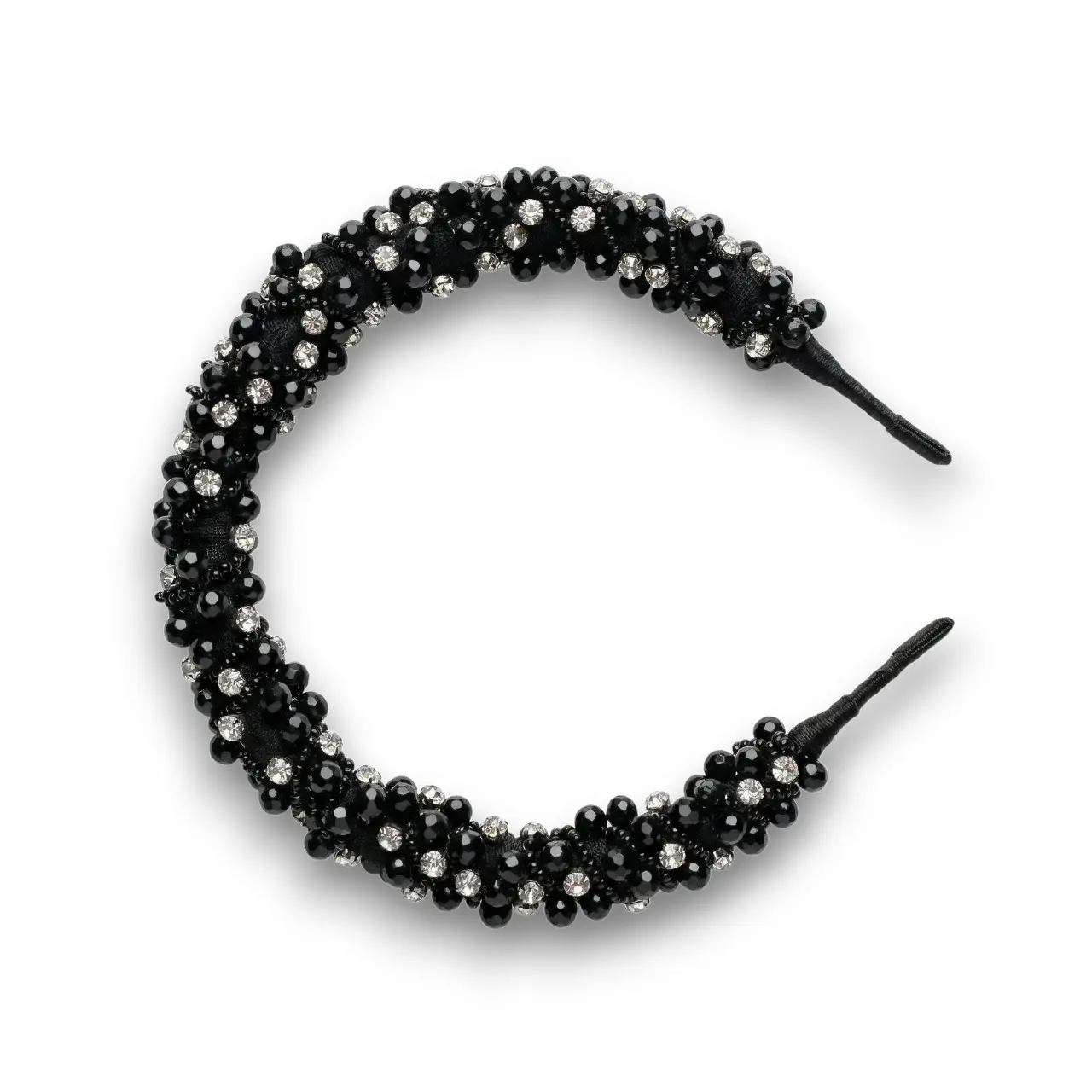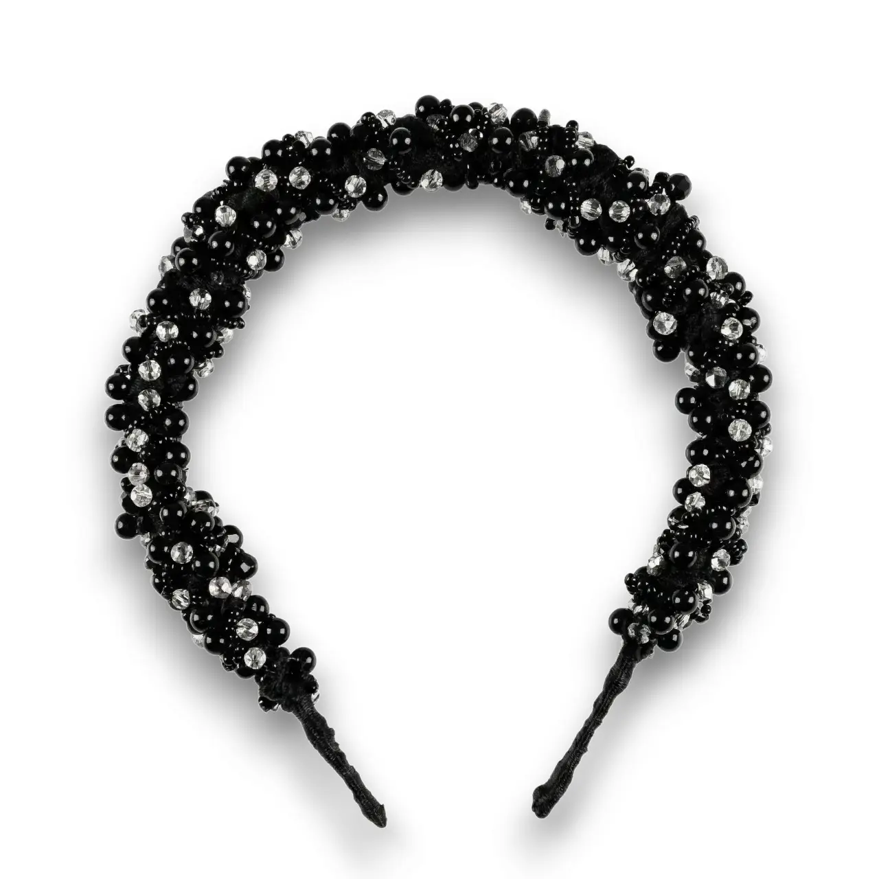 Siyah Boncuklu Zirkon Taşlı Saç Tacı