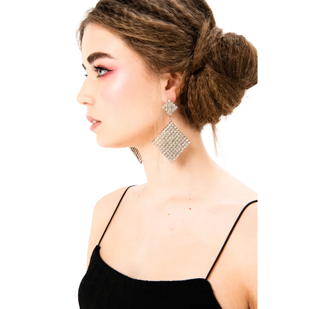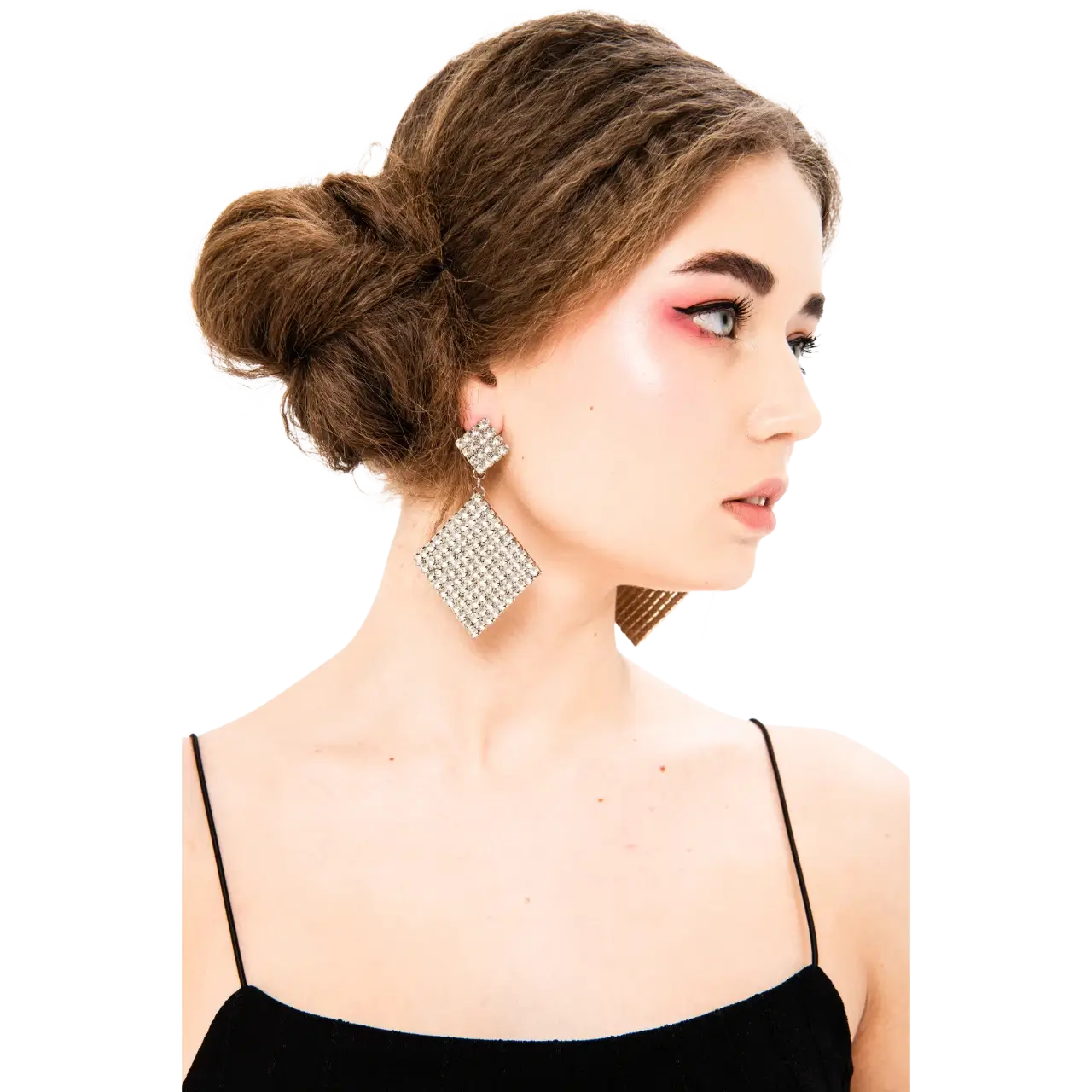 Zirkon Küpe Kare Model Gümüş Tasarım