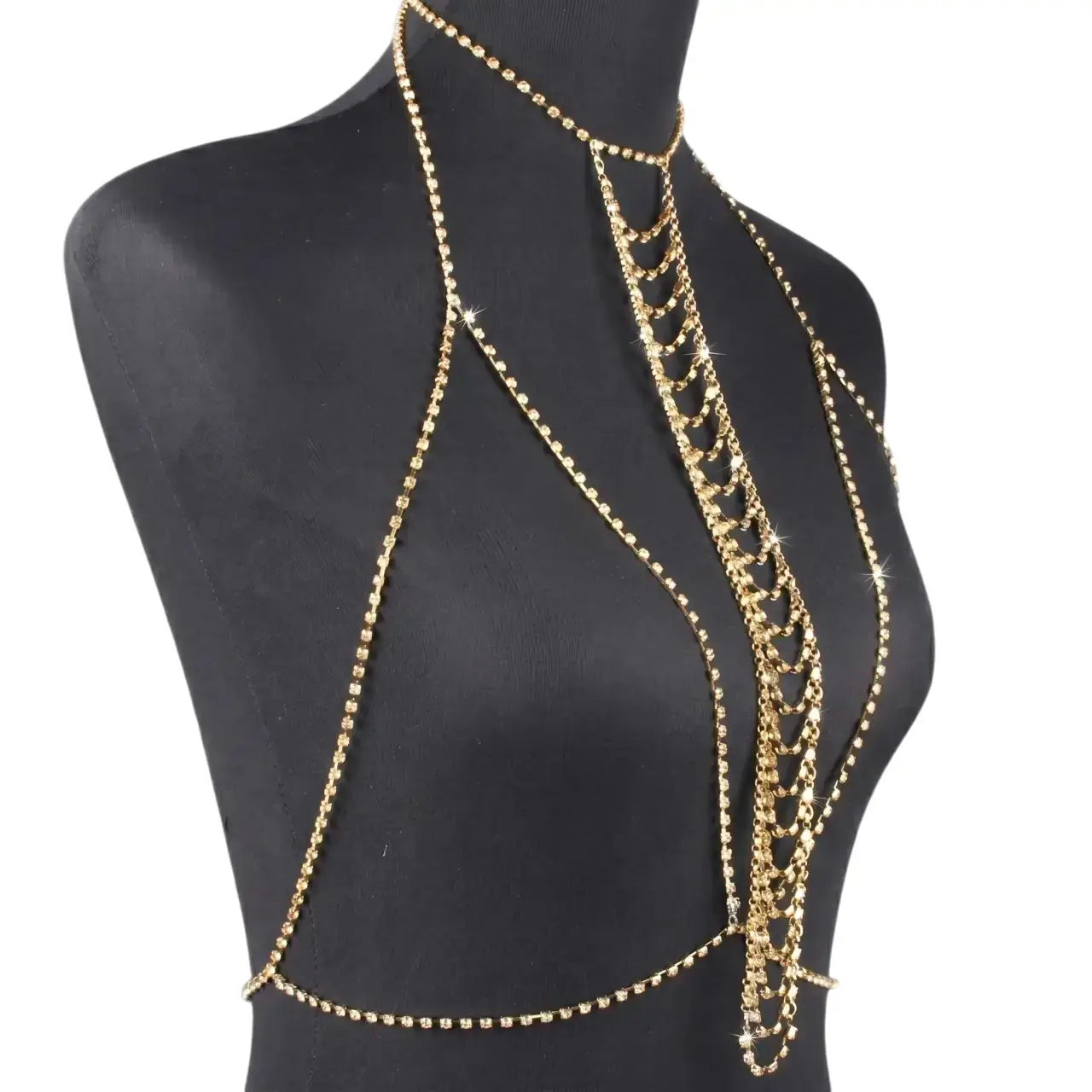 Zirkon Taşlı Altın Kaplama Vücut Zinciri