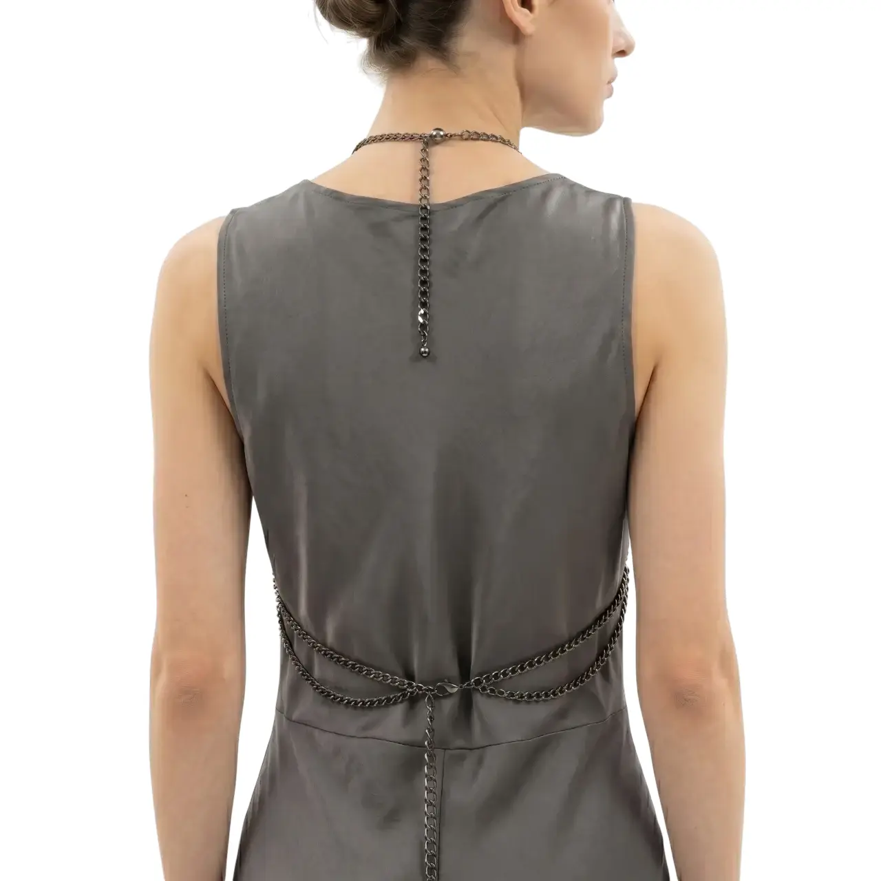 Zirkon Taşlı Boyundan Bağlamalı Vücut Zinciri