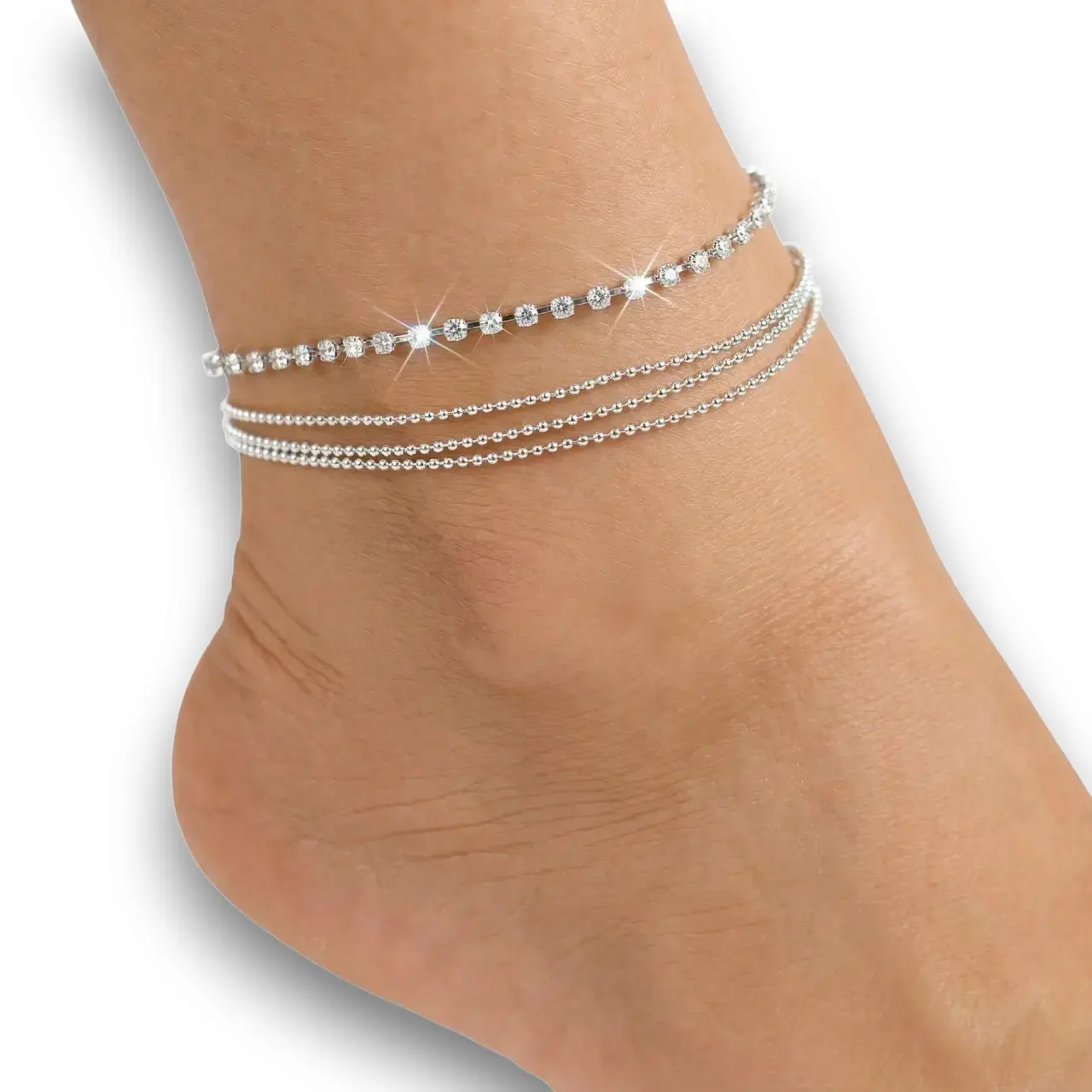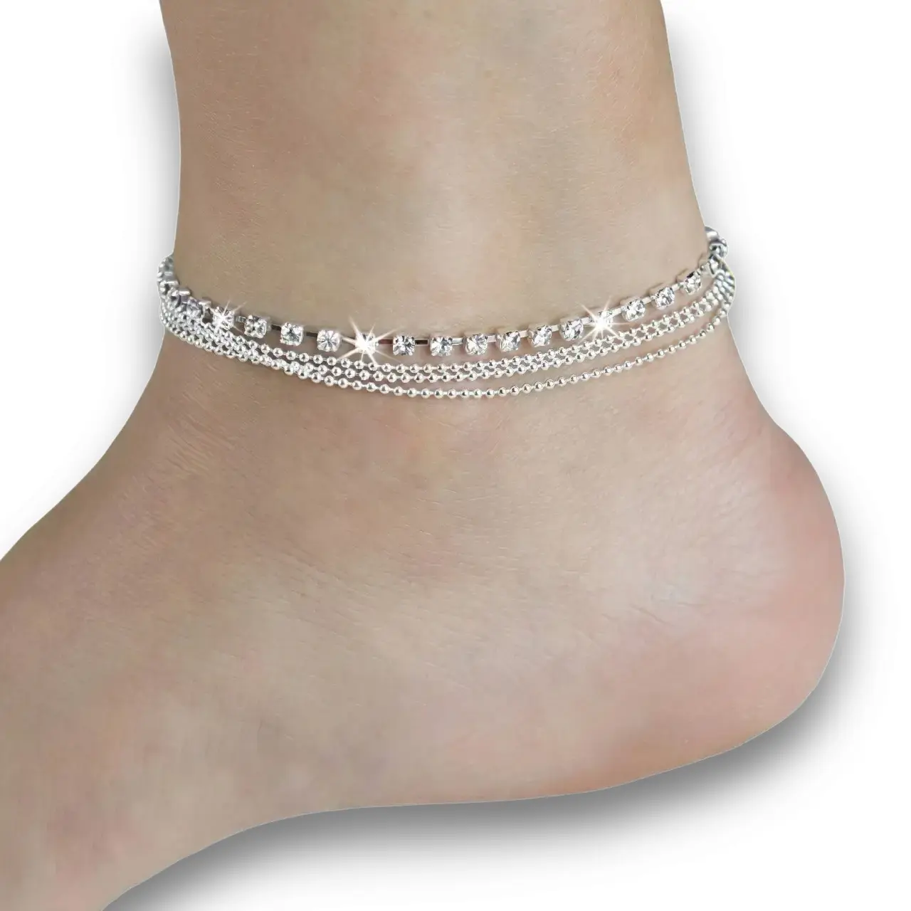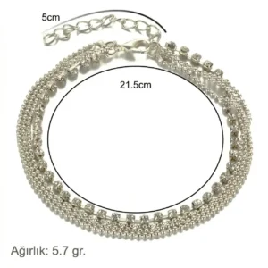 Zirkon Taşlı Gümüş Kaplama Zincir Halhal arayanlar için özenle tasarlanan bu şık model, günlük şıklığınızı kusursuzca tamamlar. Birleşik tek parça halindeki çok katmanlı yapısıyla zarafeti ışıltıyla buluşturan bu eşsiz aksesuar, her tarza uygun estetik bir duruş sergiler. TikiTonki’de beğeninize sunulan; 21,5 cm uzunluğa ek 5 cm uzatma zinciriyle ayak bileğinize rahatça oturan bu harika parçayla adımlarınıza şıklık katın.