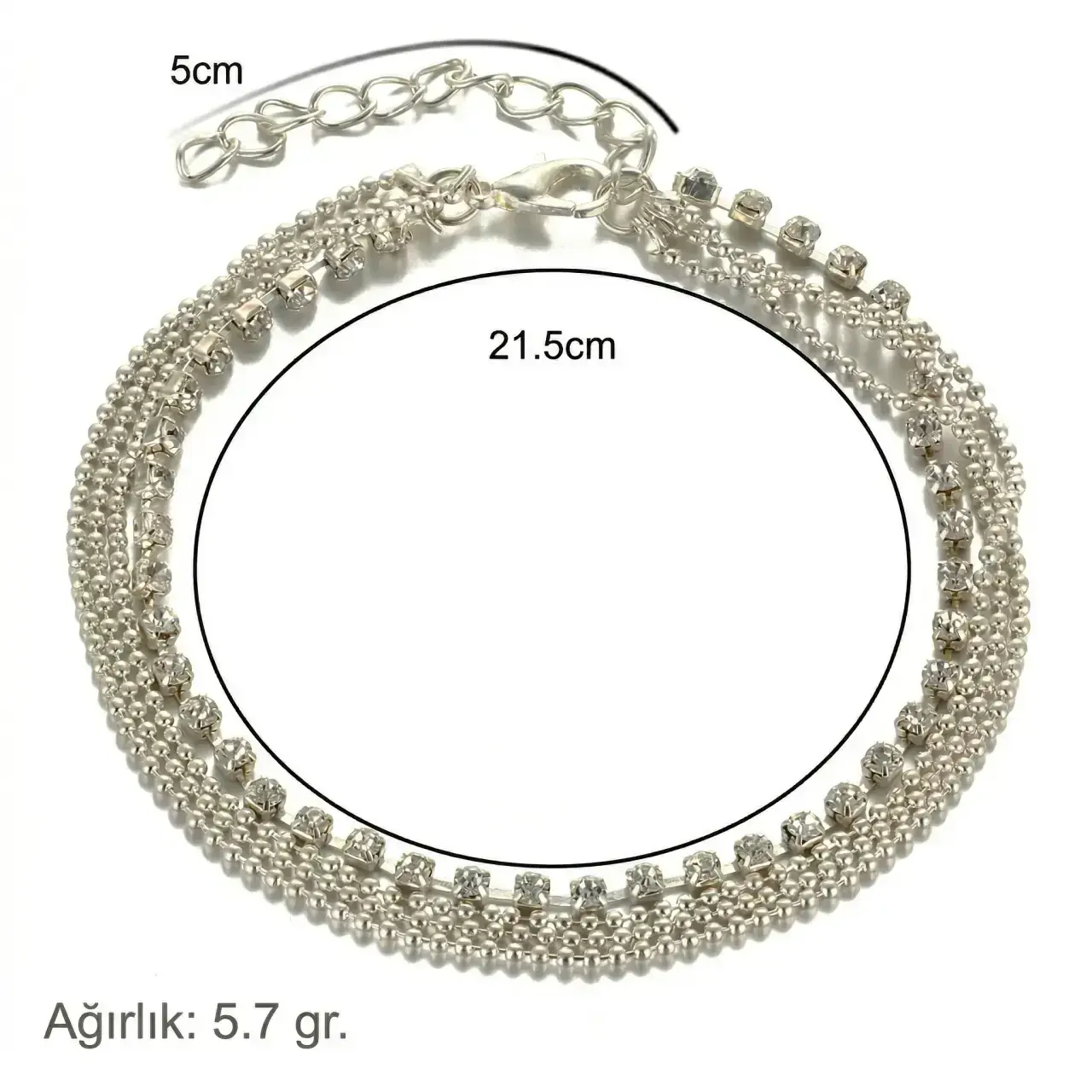 • 21,5 cm çapa ek 5 cm uzatma zinciriyle ayak bileğine kolayca uyum sağlayan pratik konforlu kullanım